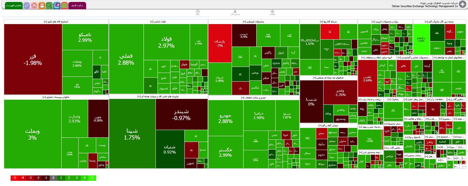 تاثیرگذارترین نمادها در رشد شاخص کل فملی، فارس، فولاد، وبملت بوده است.